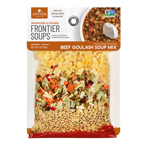 Our Wyoming Fireside Beef Goulash brings the comfort of a rustic campfire meal straight to your kitchen table. Inspired by long days on the range and chilly mountain evenings, this soup mix features a satisfying blend of red lentils, bell peppers, potatoes, and carrots—just waiting to be simmered with ground beef for a cozy, old-fashioned goulash.
